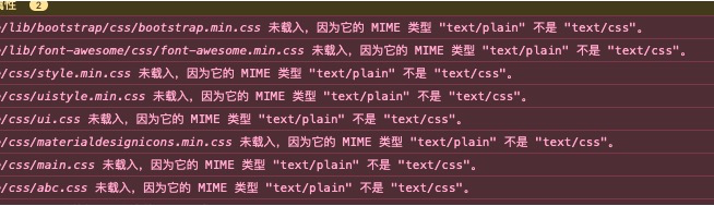 css未载入因为它的MIME类型text/plain不是text/css