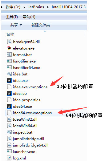 - 根据自己所安装的版本来决定,我使用的是 64 位的 idea,所以在 idea64.exe.vmoptions 文件的最后