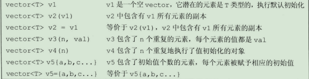 用花括号括起来的0个或多个初始元素值被赋给vector对象: