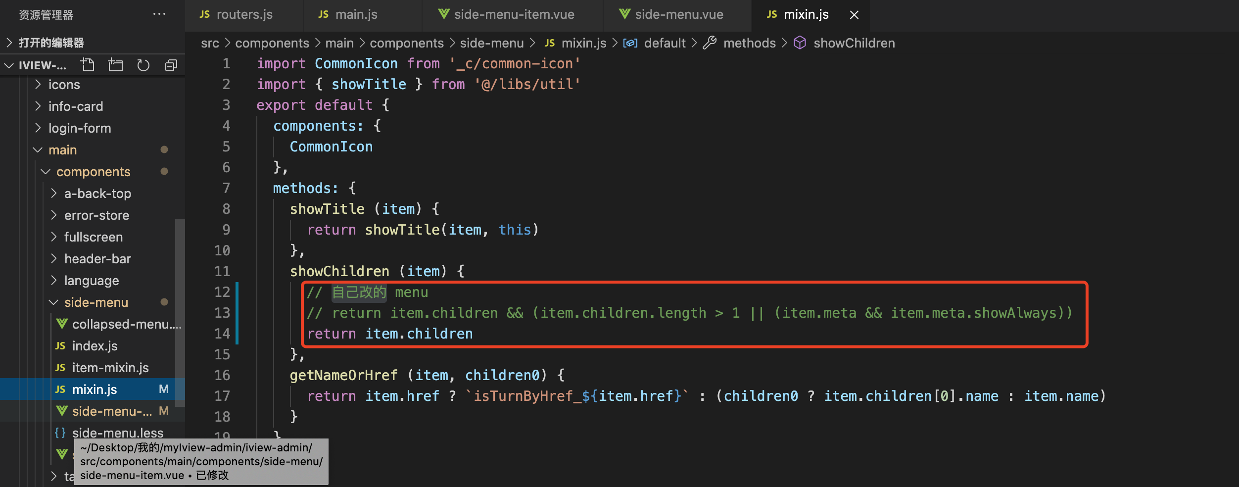 iview-admin的左侧菜单第二层有一个时不显示第一层标题