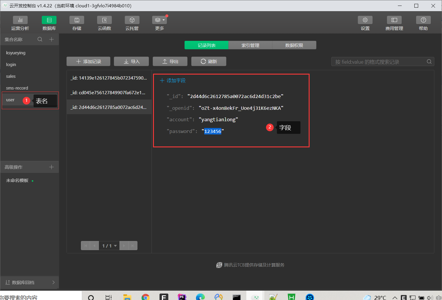 数据库环境:云开发数据库
