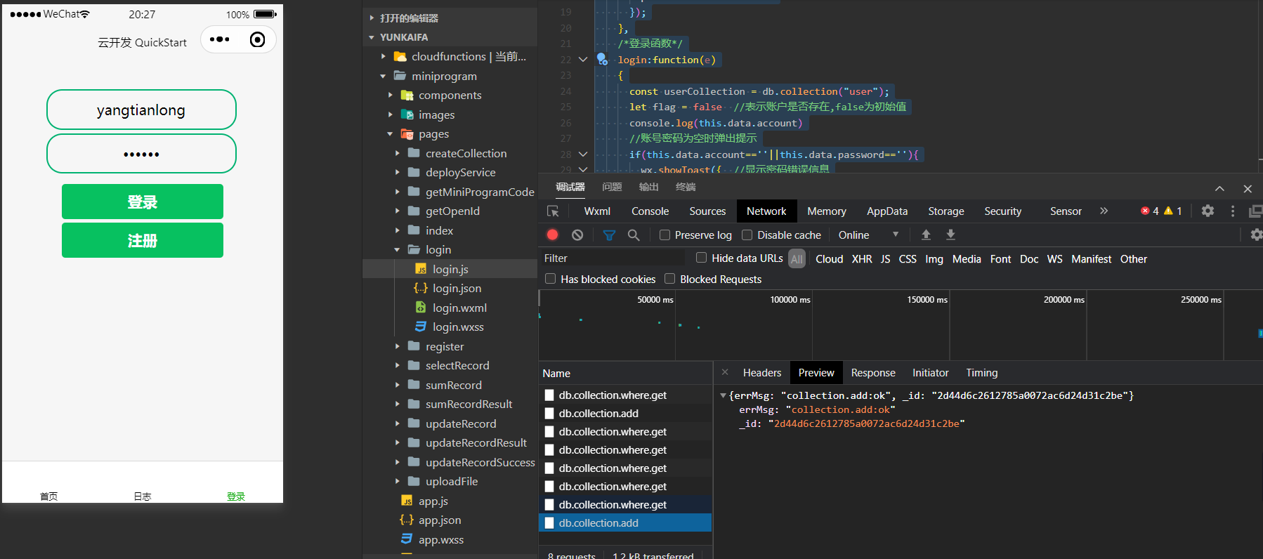 微信小程序 云开发 实现登录注册