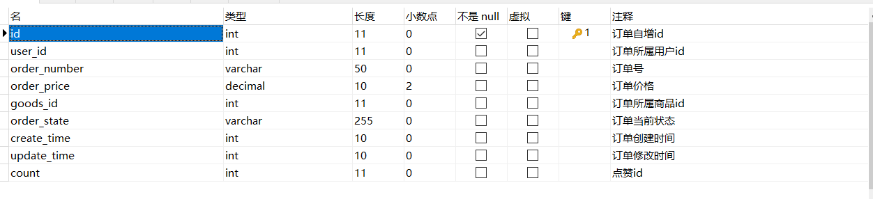 表字段:order 订单表