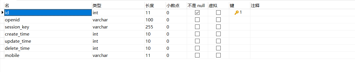 用户表:user