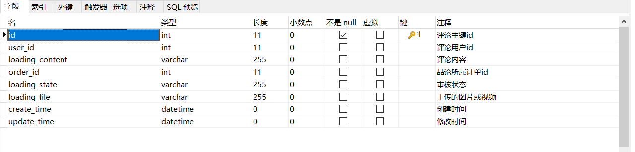评论表:loading