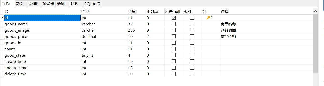 商品名称表:good