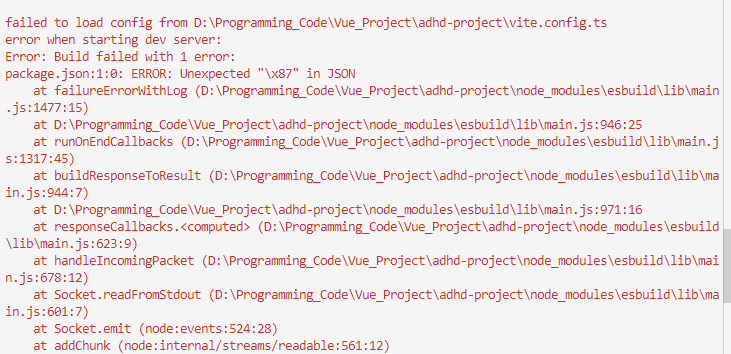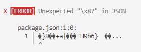 背景:码云上拉取的项目调用npm install后再调用npm run dev报错,Unexpected "\x87" in JSON,并且出现乱码