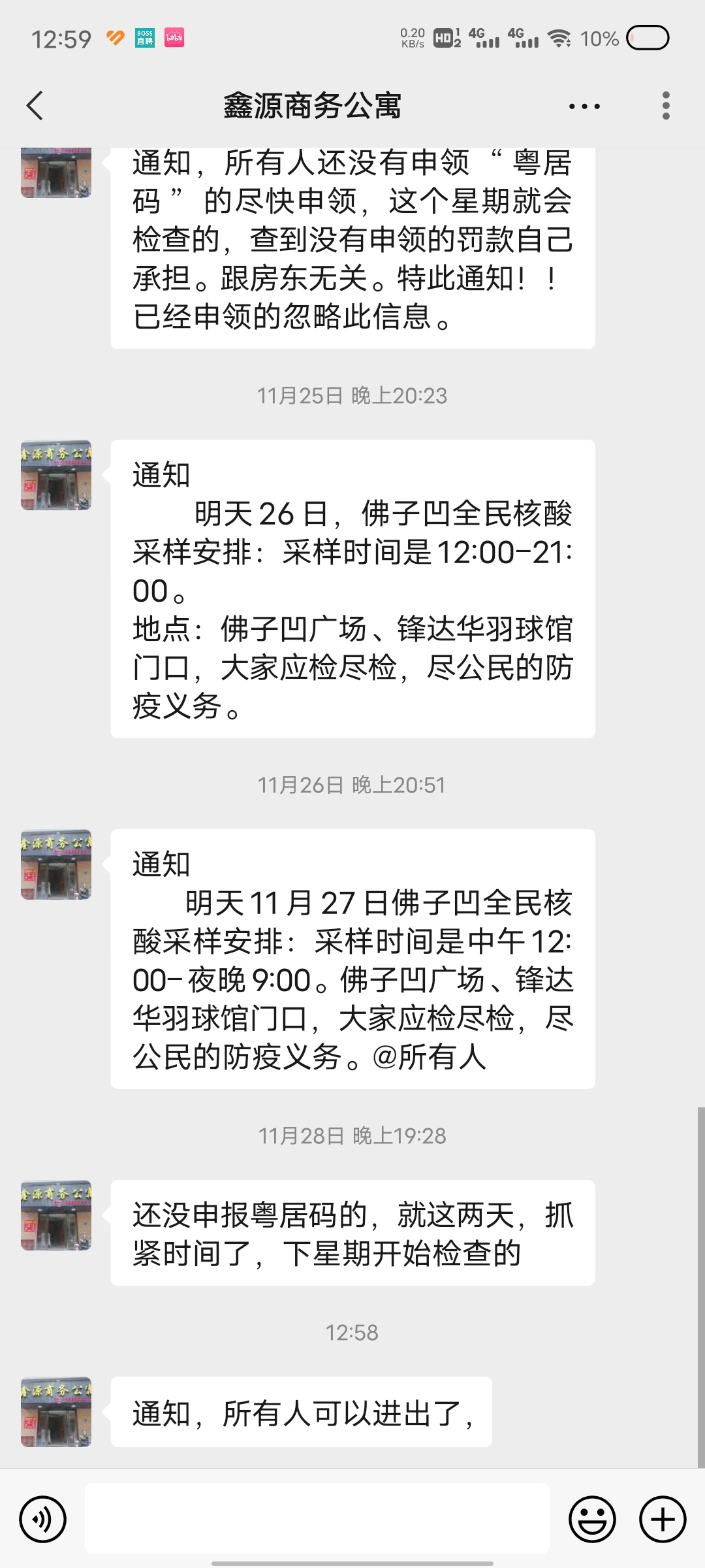 好在后面确认没啥事,撤了管控,房东发通知说可以进出了。