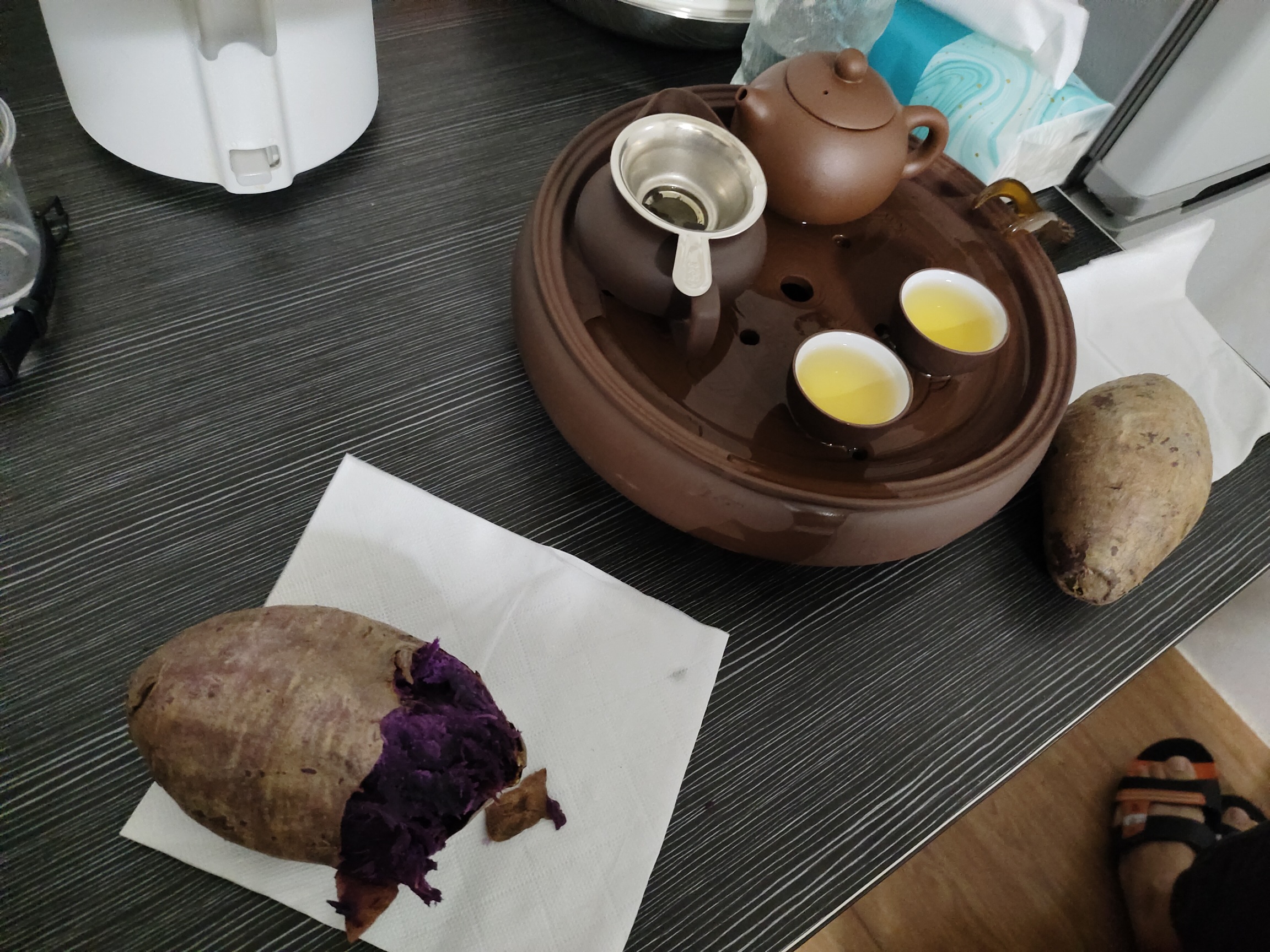 晚点回立彬租房吃吃喝喝,品尝了立彬刚到的青柑普洱还有生普洱。