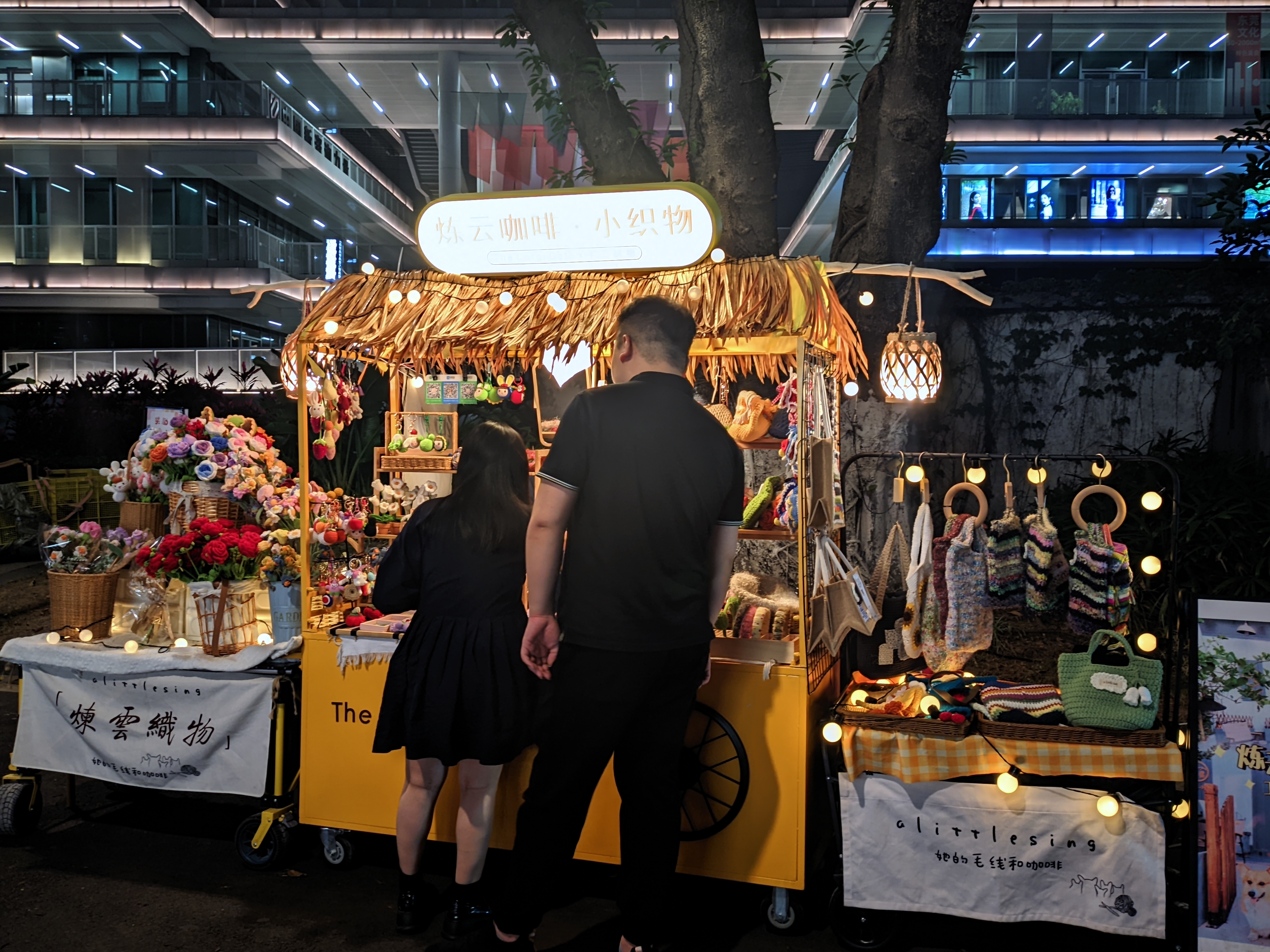 这个地方似乎是一个创意园来着,开放了摆摊。看了一下氛围着实不错,很有特色,特别是这种道路和两排的树超级像我大学宿舍楼下的路。