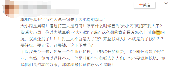 老白在刷脉脉的时候,看到了这个贴,也是讨论大小周是否取消的,之前就想跟大家聊这个话题了,今天跟大家好好聊聊大小周是否应该取消?欢迎大家畅所欲言在评论区讨论。