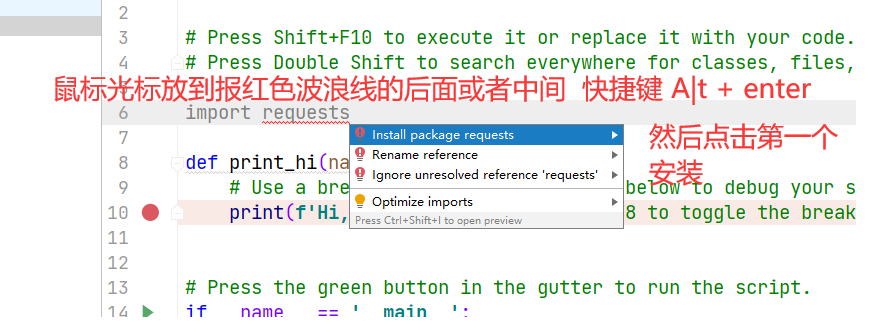 pycharm中快捷键安装第三方库