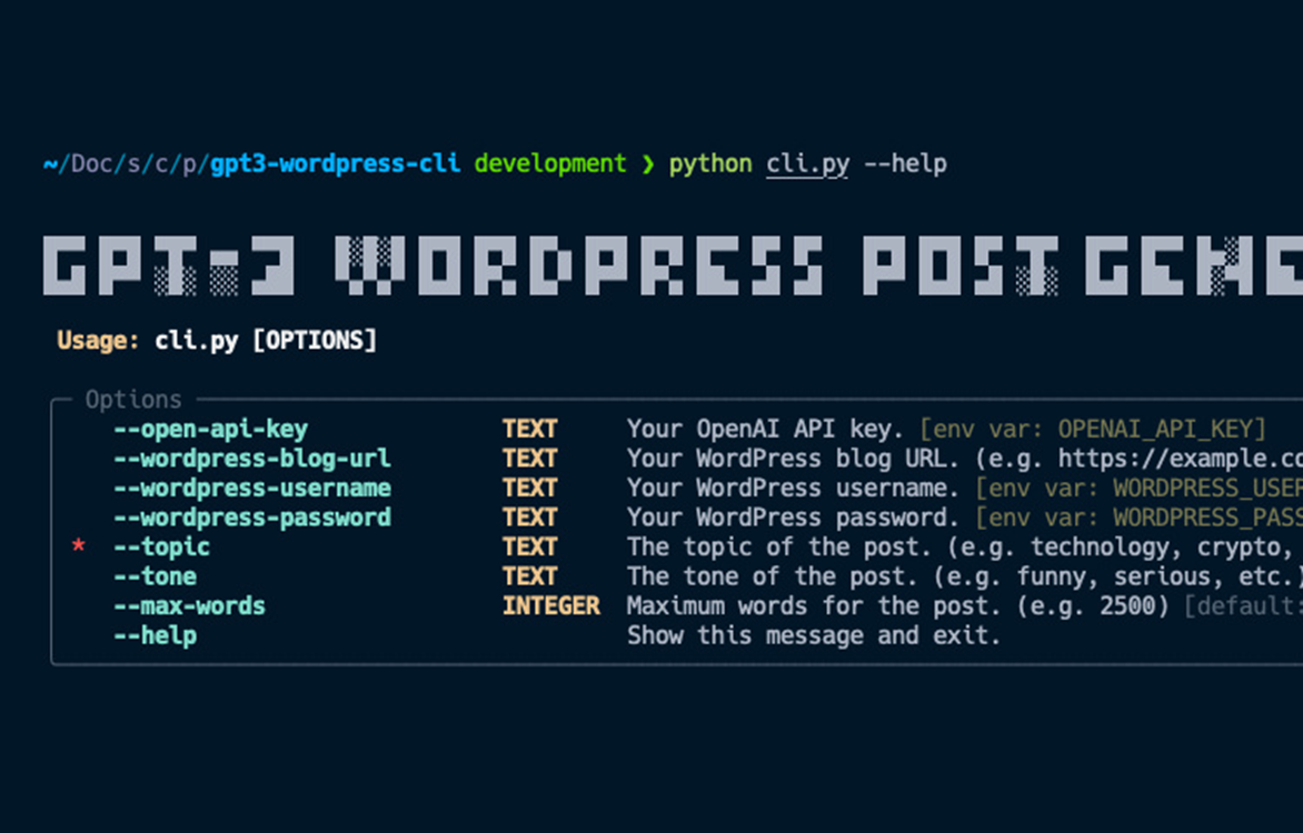 这个脚本利用OpenAI GPT-3 API以及OpenAI Python库进行API调用,并利用WordPress XML-RPC库创建WordPress帖子。您可以控制生成帖子的内容长度、主题甚至语气(例如,幽默、严肃、正式)。