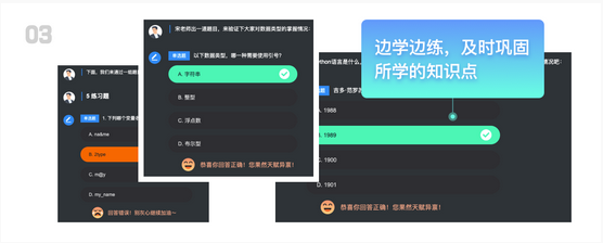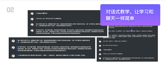 对话式交互教学,让你的Python学习像聊天一样简单,聊着聊着就学完了全部课程,沉浸式学习,让学习效率更高!