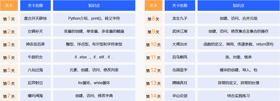 将Python语法知识拆解成14个知识篇章,学完一章闯过一关,越学越上瘾!