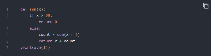 第2-3行: 设定这个设定递归算法的结束条件(if x > 99,return 0)