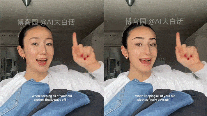 我们准备了一段常见介绍衣服的短视频。由于是跨境电商,面孔是亚洲面孔;我们需要将他的面孔换成外国的面孔,让衣服更好的融入当地。