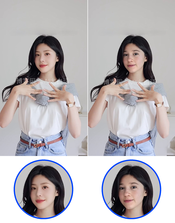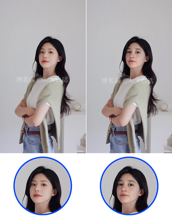 如果没有把替换过的和没有替换过的放在一起对比很难发现是经过AI换脸的。