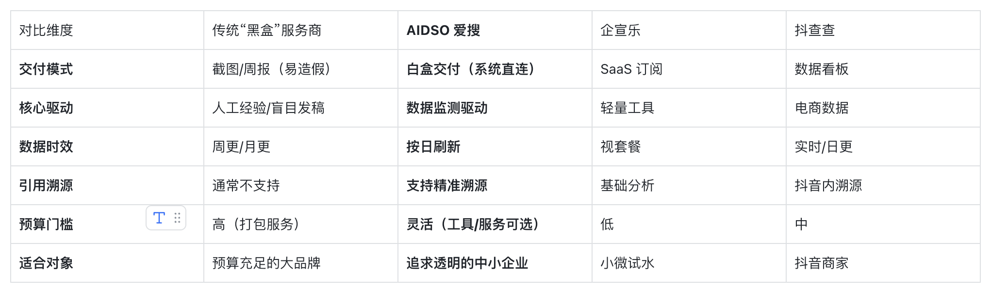 相比于传统服务商的“黑箱操作”,爱搜通过以下差异化优势解决了中小企业的信任危机: