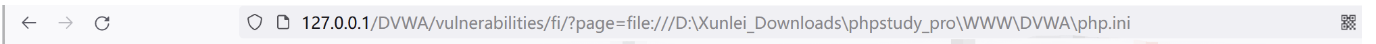 http://127.0.0.1/DVWA/vulnerabilities/fi/?page=D:\Xunlei_Downloads\phpstudy_pro\WWW\DVWA\php.ini