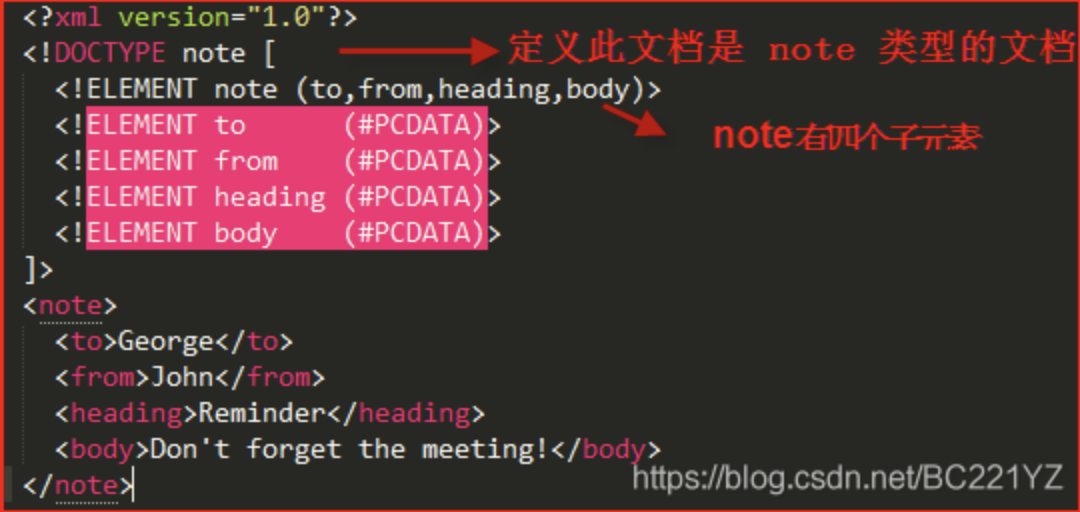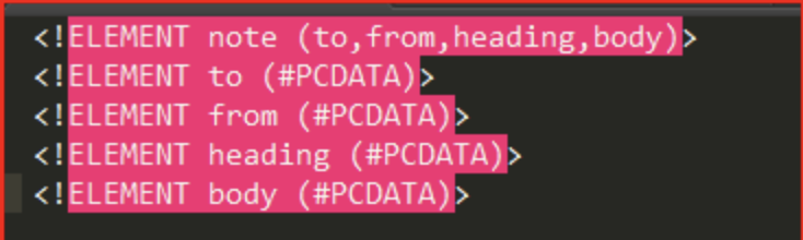 文档类型定义(DTD)可定义合法的XML文档构建模块。它使用一系列合法的元素来定义文档的结构。DTD 可被成行地声明于 XML 文档中,也可作为一个外部引用。
