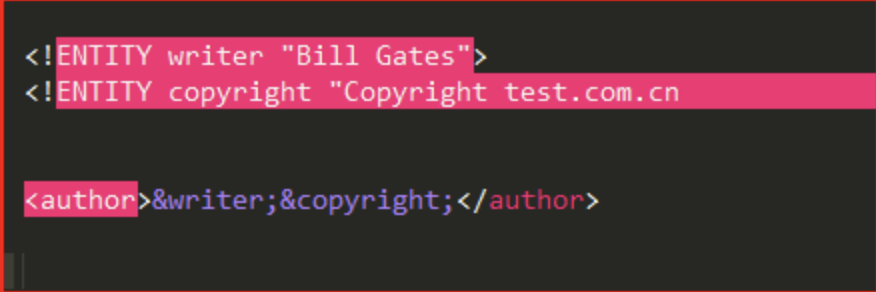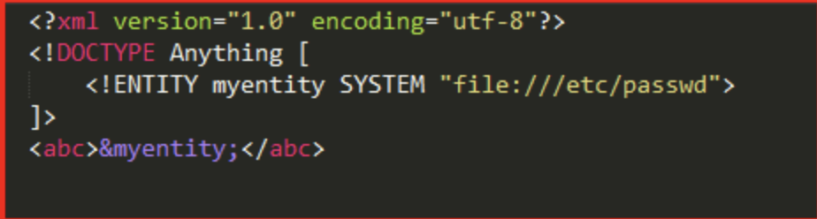可以在DOCTYPE头部标签中通过SYSTEM关键字定义“实体”,这些“实体”可以访问本地或远程的内容。SYSTEM告诉XML解释器,从URI中读取实体的内容。攻击者可以通过实体将自定义的值发送给应用程序,然后让应用程序去呈现,比如上面就是把实体定义为passwd文件,让XML解释器去读取文件。