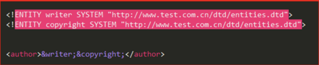 **方式三:**通过DTD外部实体声明引入外部实体声明