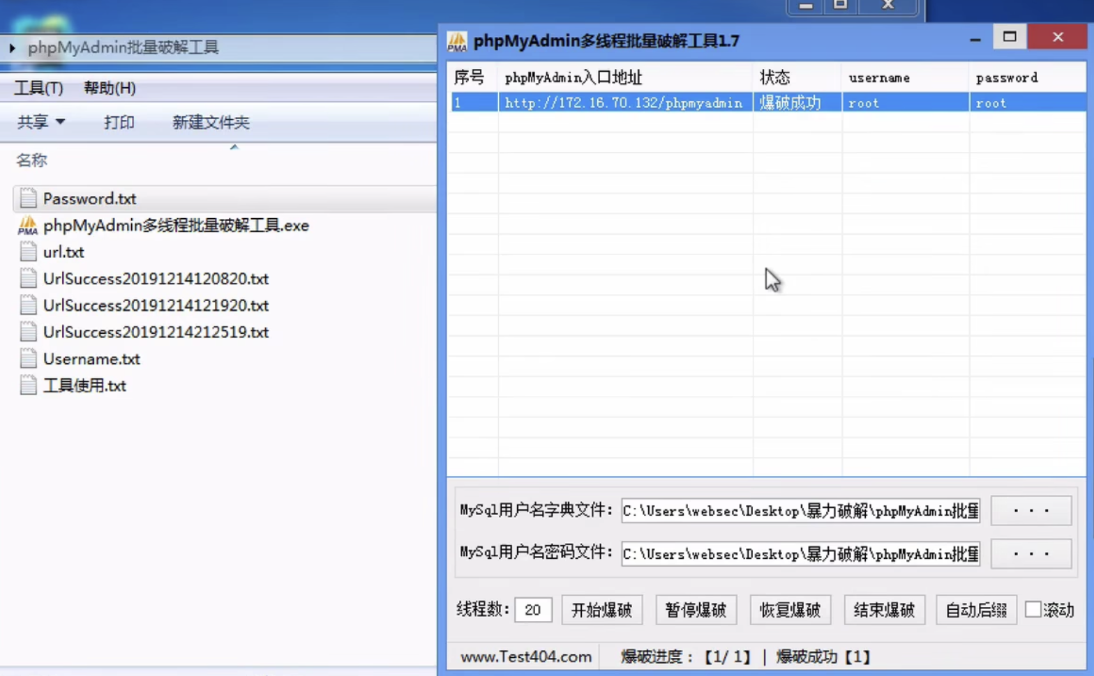 方法二:使用phpmyadmin多线程批量破解工具进行爆破