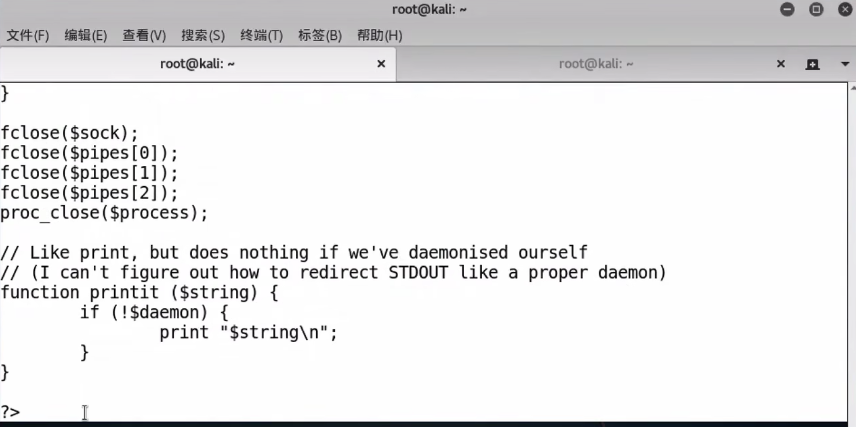 终端输入:cat /usr/share/webshells/php/php-reverse-shell.php查找木马代码