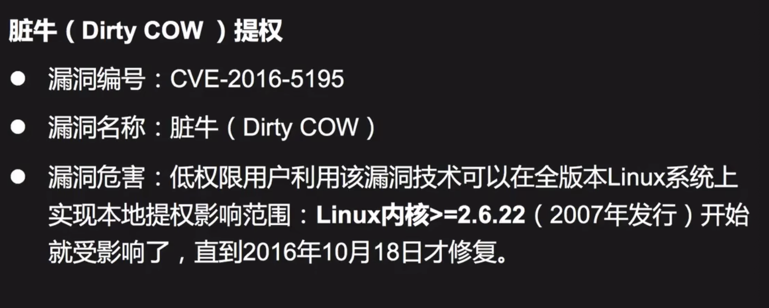 Linux内核的内存子系统在处理写入时复制(copy-on-write,COW)时产生了竞争条件(race condition )。恶意用户可利用此漏洞,来获取高杠限,对只读内存映射进行写访问