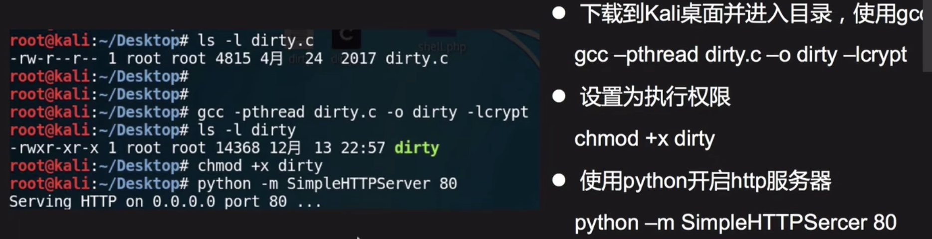使用gcc编译:gcc -pthread dirty.c(文件) -o(输出) dirt(生成该工具文件) -lcrypt