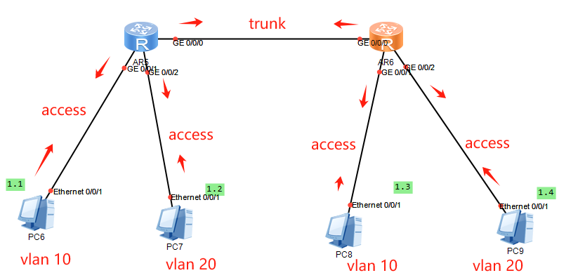 2.端口配置trunk/access接口模式