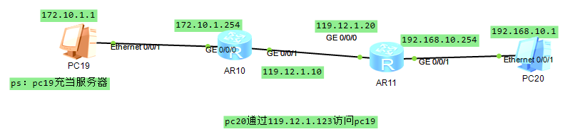 (2)g0/0/1:nat server global 119.1.1.123 inside 172.16.0.1(私网的服务器对外表示的IP,inside对内部私网的IP为172.16.0.1)