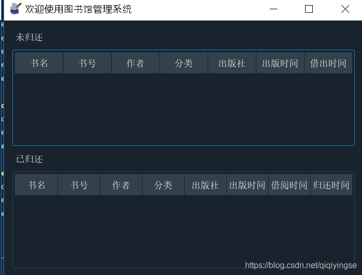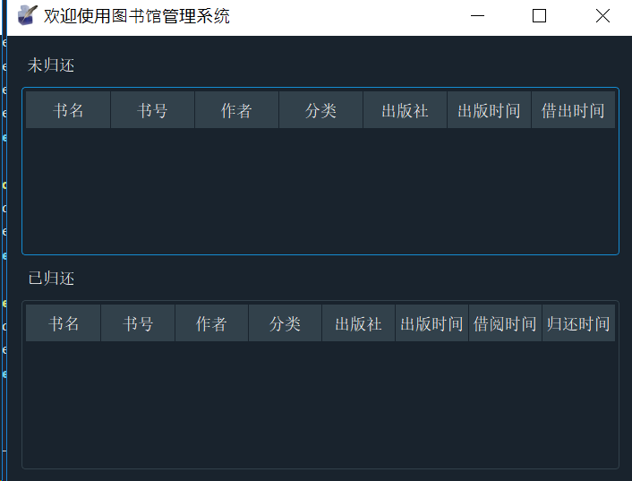 # 分为两块,上方是已借未归还书,下方是已归还书