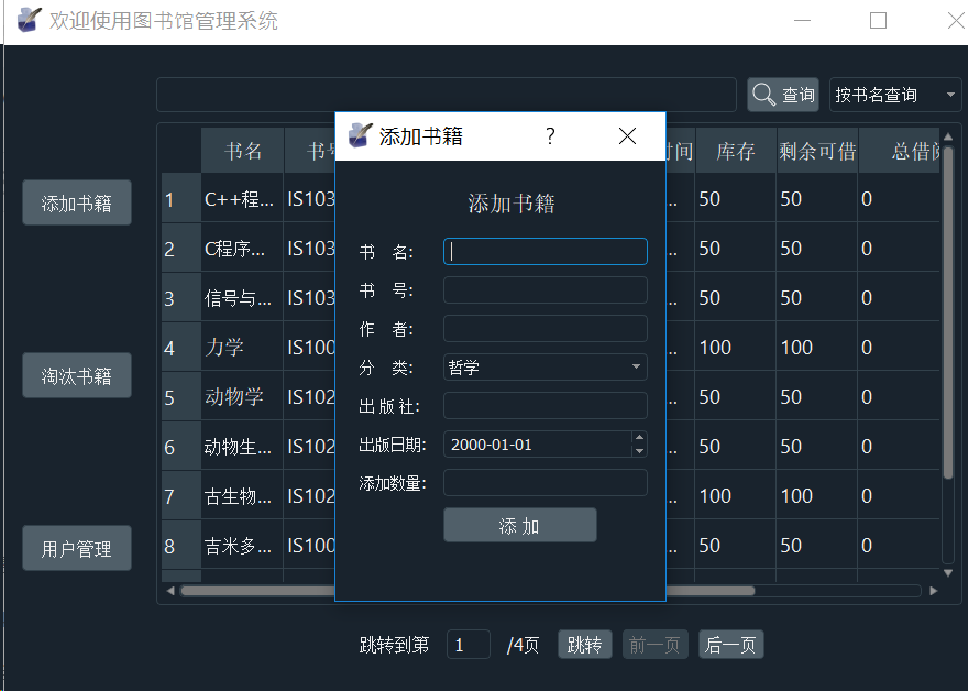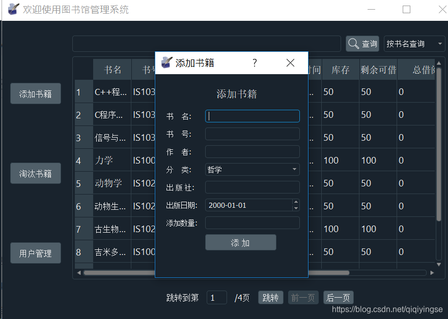 当点击添加书籍按钮之后,在本界面是发送一个信号给添加书籍模块,然后调用添加书籍功能