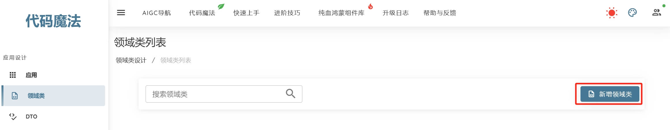 1.侧栏菜单中选择“领域类”,然后点击“新增领域类”按钮: