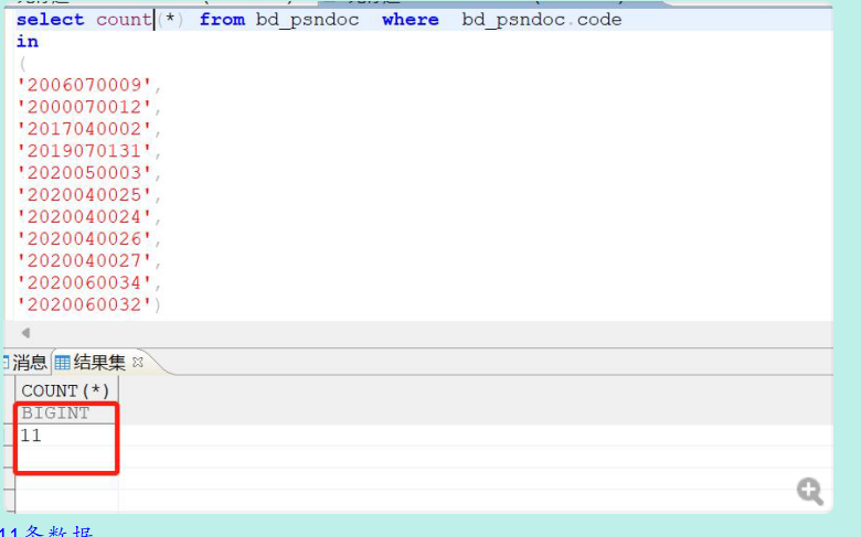 查询表bd_psndoc 只有4000多条记录,并且只更新11条数据