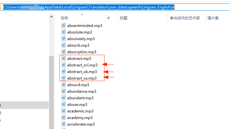 虽然暂时没法下载这个语音库,但是可以手动提取,方法就是,一个词一个词的查,语音自动截取到这个目录,文件没有后缀,其实是个MP3格式的,只要批处理加上后缀即可。