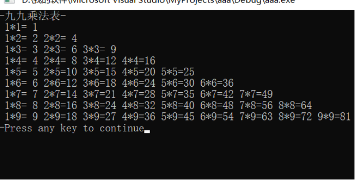 printf("-九九乘法表-\n");