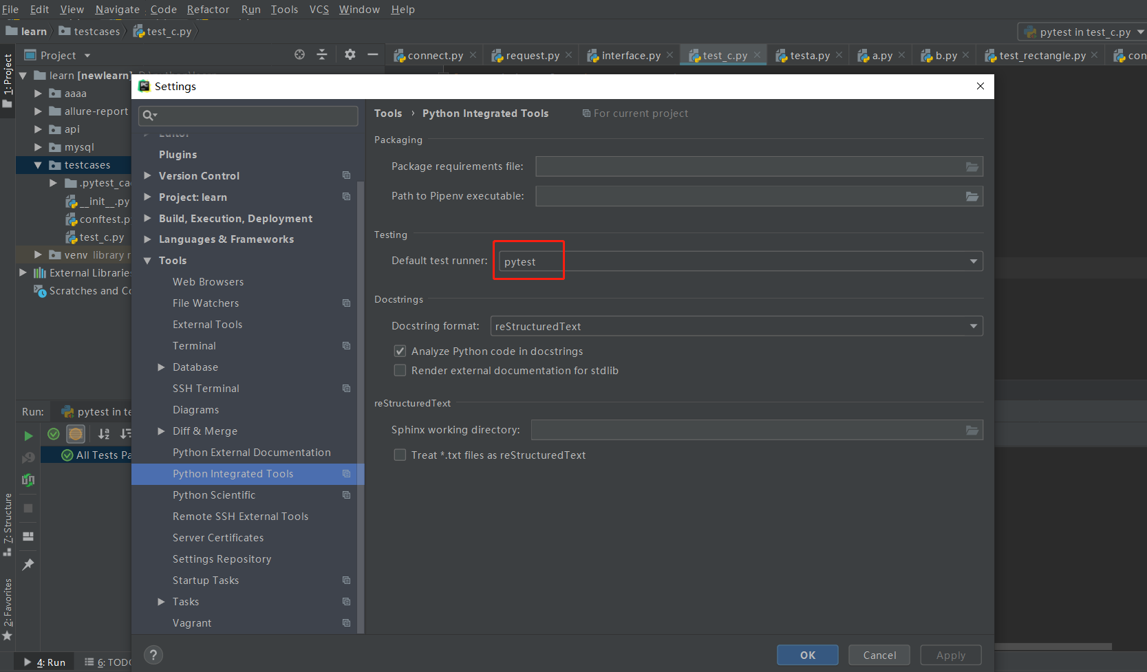 注意:先设置模式再写用例(不然点用例左侧箭头不会执行)