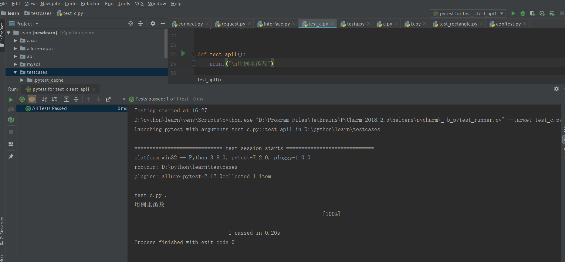 此时,在执行pytest命令时,会自动从当前目录及子目录中寻找符合上述约束的测试函数来执行。