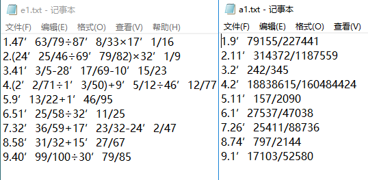 可见我们的出题功能是符合需求的,即“真分数在输入输出时采用如下格式,真分数五分之三表示为3/5,真分数二又八分之三表示为2’3/8。”而且如第九题,能正确生成括号。