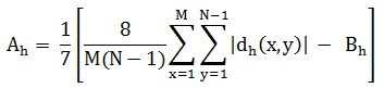 模糊估计分为两个步骤:首先是边缘检测,然后是模糊确定。此处模糊估计是通过计算当前像素点与领域内像素点均值之差来确定。我们用f(x,y) 表示图片,其中。定义水平绝对差如下: