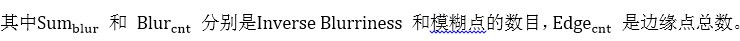 低于阈值ThB的Inverse Blurriness 被认为是模糊的。实验测试表明此处的阈值ThB取值0.1。最后,边缘模糊的均值和比率为: