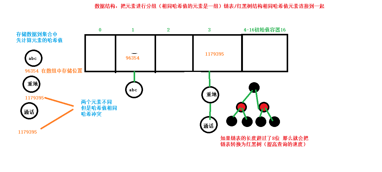 而JDK1.8中,哈希表存储采用数组+链表+红黑树实现 当链表长度超过阀值(8)时 将链表转换为红黑树 这样大大减少了查找时间