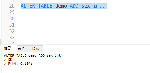 ALTER TABLE 表名 ADD 列名 数据类型;添加一列