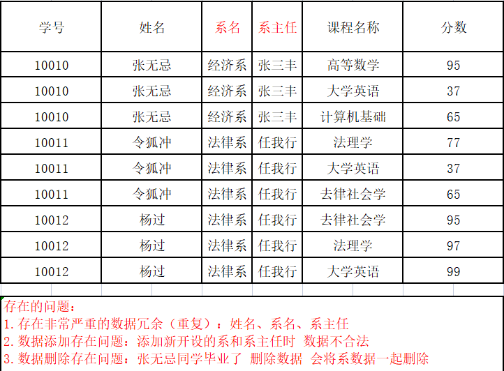 - 例如:学号-->姓名 (学号,课程名称)-->分数