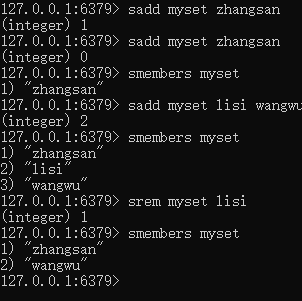 - 获取:smembers key:获取set集合中所有元素