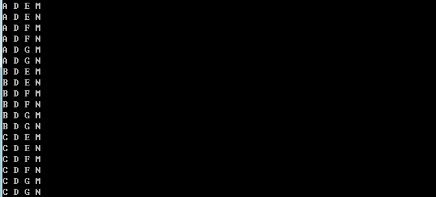 例如输入两个集合“ABC”和“12”,结果如下