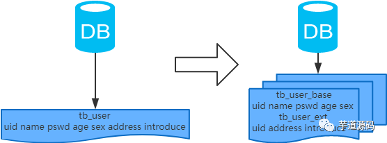 1.概念:以字段为依据,按照字段的活跃性,将表中字段拆到不同的表(主表和扩展表)中。